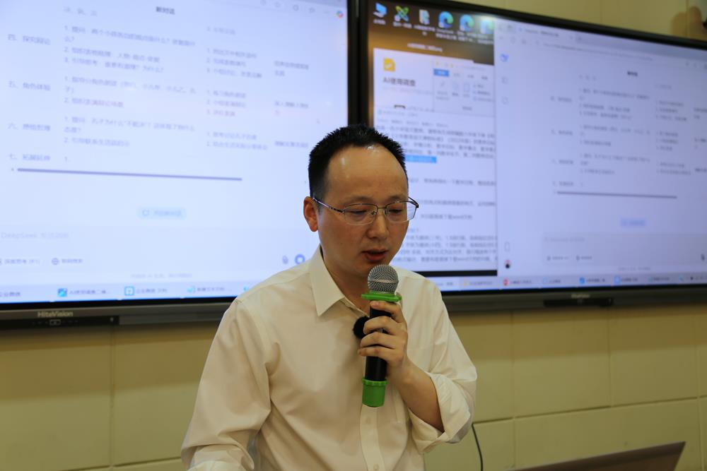 活动第三阶段,星洲小学周学平老师带来专题讲座《AI 赋能小学语文教学》。周老师潜心教育教学研究,专注信息化创新应用,两个小时的讲座以实践为主,呈现了AI在语文课的课前、课中、课后等教学场景的应用:利用企业微信收集表设计问卷;备课中引入deepseek辅助并在强化逻辑、追问、细化中逐步完善;数字人的应用;互动小游戏等等,一系列可视化操作让所有参与教师收获满满。